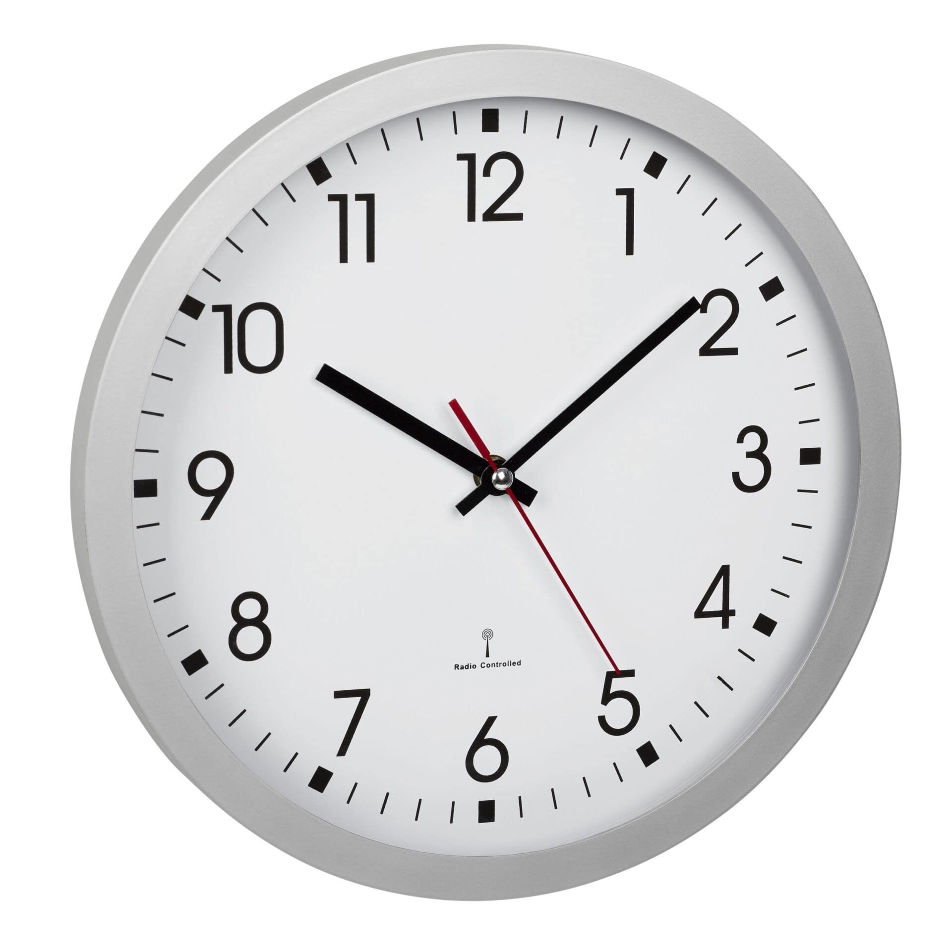 TFA Dostmann Analoge Funk-Wanduhr, 60.3522.02, 30 cm Durchmesser, mit Sekundenzeiger, Glasabdeckung, großes Ziffernblatt, für Küche/Wohnzimmer/Büro, Runde Funkwanduhr, 30×4,3cm, Silber